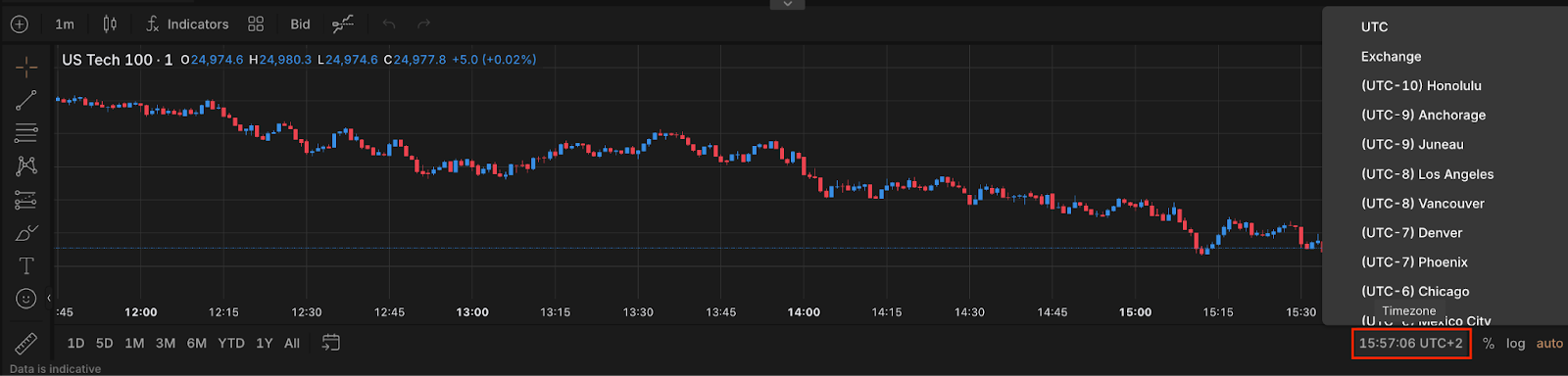 Pēc noklusējuma grafikā redzamā laika josla atbilst jūsu ierīces laika joslai.